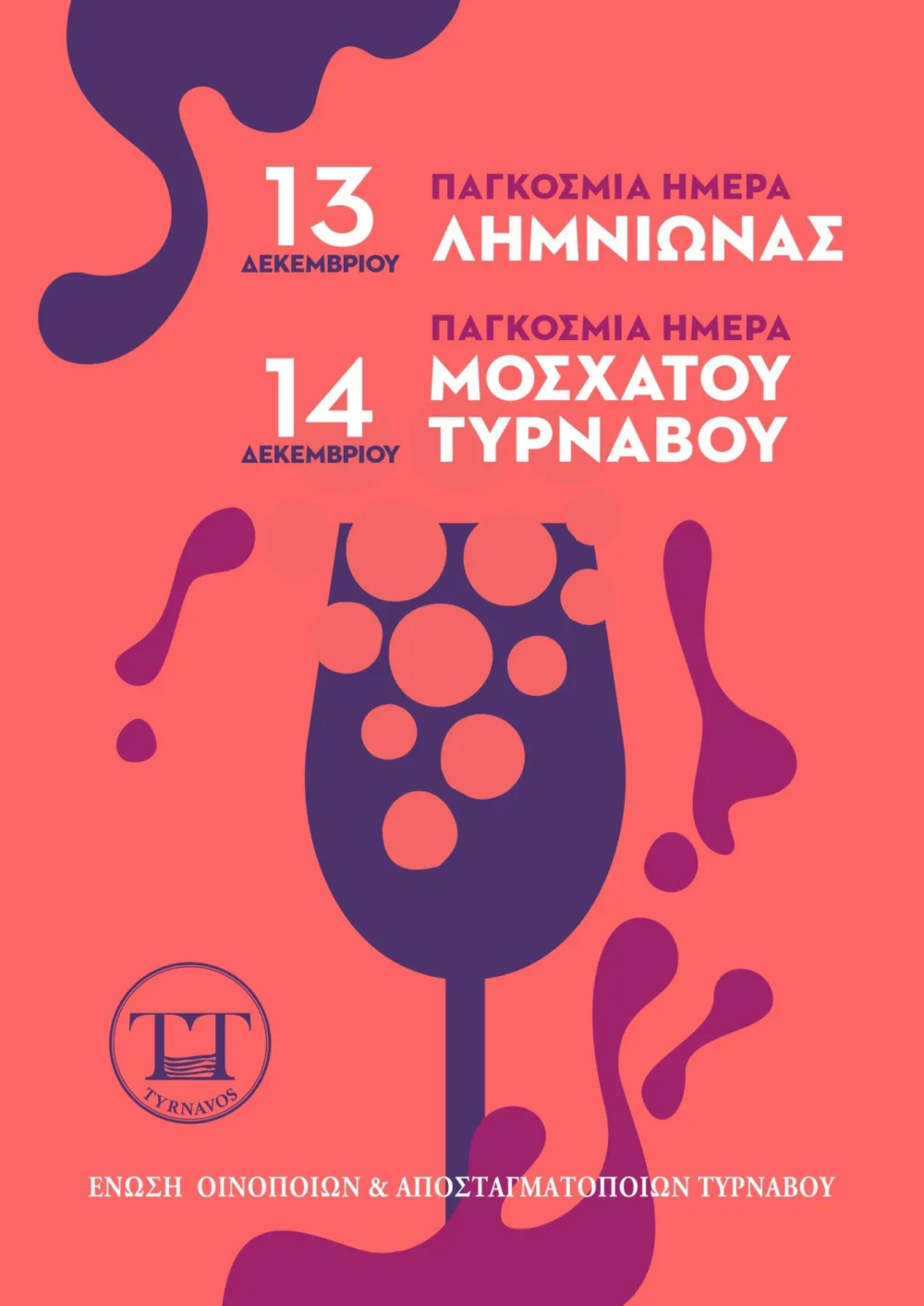 Με την Παγκόσμια Ημέρα Λημνιώνας στις 13 Δεκεμβρίου και την Παγκόσμια Ημέρα Μοσχάτου Τυρνάβου στις 14 Δεκεμβρίου, ο θεσμός που εγκαινιάστηκε πέρυσι αποκτά φέτος ακόμα μεγαλύτερη δυναμική, αναδεικνύοντας τόσο τις χαρακτηριστικές αυτές ποικιλίες όσο και τον γαστρονομικό χαρακτήρα της περιοχής.