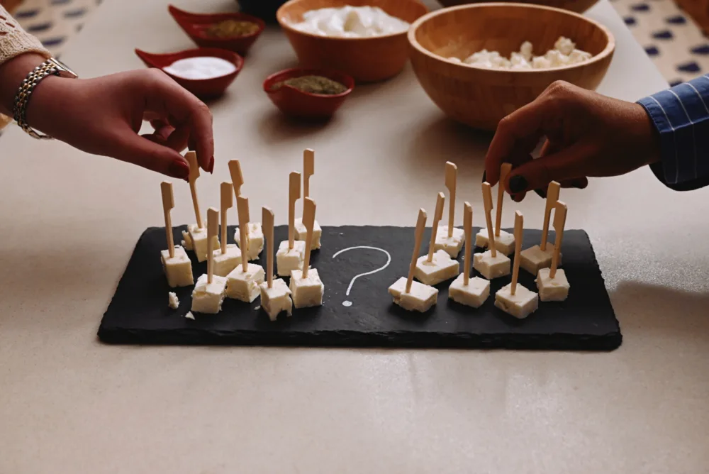 Μέσα από γεύσεις, αντικείμενα και αφήγηση, οι συμμετέχοντες καλούνται να διερευνήσουν έννοιες όπως ταυτότητα, κληρονομιά, ιδιοκτησία, πολιτισμική μνήμη. Να αναρωτηθούν «τι θα ήταν η Ελλάδα χωρίς φέτα;».