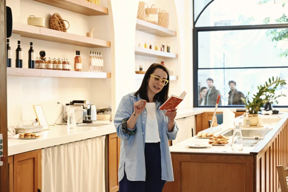 H Κλαίρη Μπακούρα μού εξηγεί πώς, ό,τι κάνει, ξεκινά από την πιο βαθιά της πίστη ότι οι άνθρωποι συνδέονται μέσα από τις εμπειρίες. Η τροφή, ο πολιτισμός και το θέατρο είναι για εκείνη οι πιο άμεσες γλώσσες σύνδεσης.
