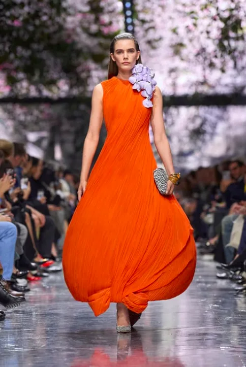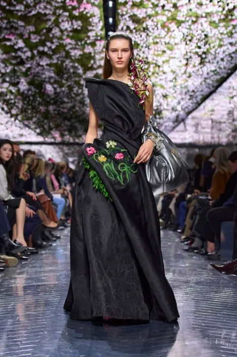 Οι θεατές στο Μουσείο Rodin είδαν ένα σκηνικό βγαλμένο μέσα από έναν ονειρικό κήπο ίσως έναν από εκείνους που ο ίδιος ο Christian Dior αγαπούσε πολύ, την κλασική σιλουέτα του Dior να μεταμορφώνεται με τρόπο γλυπτικό και τα κυκλάμινα να παίρνουν τη μορφή υπερμεγεθών αξεσουάρ που έμοιαζαν με ανθισμένα γλυπτά.