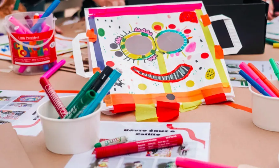 Από τις 11:00, παιδιά και γονείς συμμετέχουν σε εργαστήρια κατασκευής μάσκας και face painting, διαδραστικά θεατροπαιδαγωγικά προγράμματα που εμπνέονται για τις απόκριες από την Αρχαία Ελλάδα, το Βυζάντιο ή την παλιά Αθήνα ενώ DJs ντύνουν μουσικά την ημέρα.