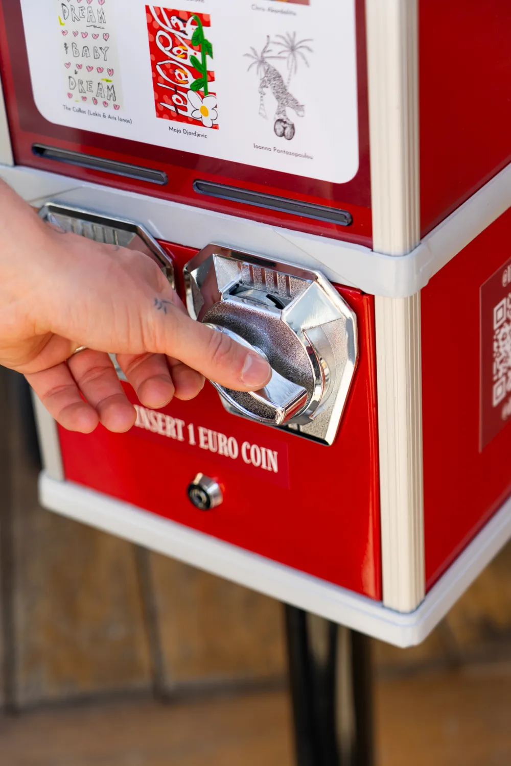 Το vending machine βρίσκεται αυτή τη στιγμη σε τρεις διαφορετικούς μα και συννομιλούντες τελικά χώρους μέσα στον αθηναϊκό αστικό ιστό ως ένα ζωντανό στοιχείο που συνυπάρχει με εκθέσεις, έργα Ελλήνων καλλιτεχνών και τη ζωή της πόληςι προσκαλώντα τους επισκέπτες, τους περαστικούς και τους θαμώνες να το ανακαλύψουν λειτουργώντας ως μια διαφορετική είσοδος στην εμπειρία της τέχνης και φιλανθρωπίας, πιο άμεση, παιχνιδιάρικη και προσιτή.