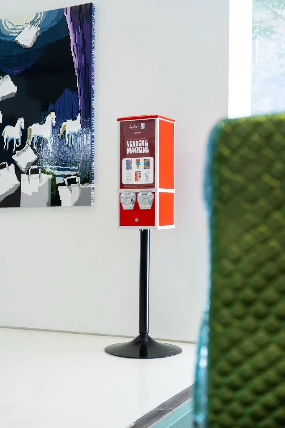 Σε αυτά τα σημεία βρίσκονται, για την ώρα, τα Mini Art Print Vending Machines, τα αυτόματα μηχανήματα που εμπνεύστηκε η ιδρύτρια του Lipshop, Ρεγγίνα Κουρή και δημιούργησαν σε συνεργασία με την Μαριάννα Μαυρουδή, Associate Director της γκαλερί Δύο Χωριά, φυσικά με τη σύμφωνη και άκρως θετική γνώμη των καλλιτεχνών.