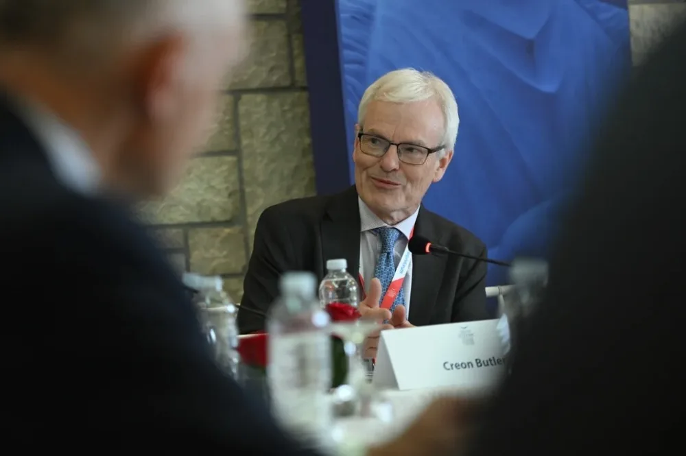 Η συζήτηση επεκτάθηκε και στον ρόλο του ευρώ στο διεθνές σύστημα, με τον κ. Butler να σημειώνει ότι αποτελεί ουσιαστικά τη μοναδική εναλλακτική στο δολάριο ως παγκόσμιο αποθεματικό νόμισμα. Όπως υπογράμμισε, η ενίσχυση του διεθνούς ρόλου του ευρώ καθίσταται πλέον πιο κρίσιμη από ποτέ, ιδίως σε ένα περιβάλλον όπου η αξιοπιστία των ΗΠΑ ως πυλώνα σταθερότητας τίθεται υπό πίεση.