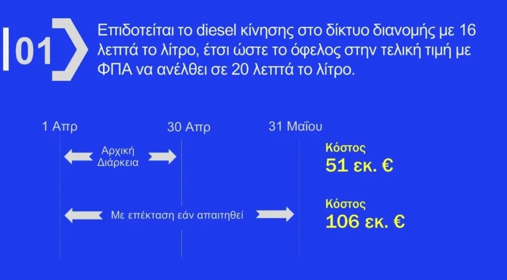 Τα μέτρα για ντίζελ και fuel pass αφορούν το δίμηνο Απριλίου-Μαΐου - Η επιδότηση 15% στα λιπάσματα θα έχει κόστος 15 εκατ. ευρώ. - Αποζημίωση στις ακτοπλοϊκές εταιρείες για να μην αυξήσουν τα εισιτήρια