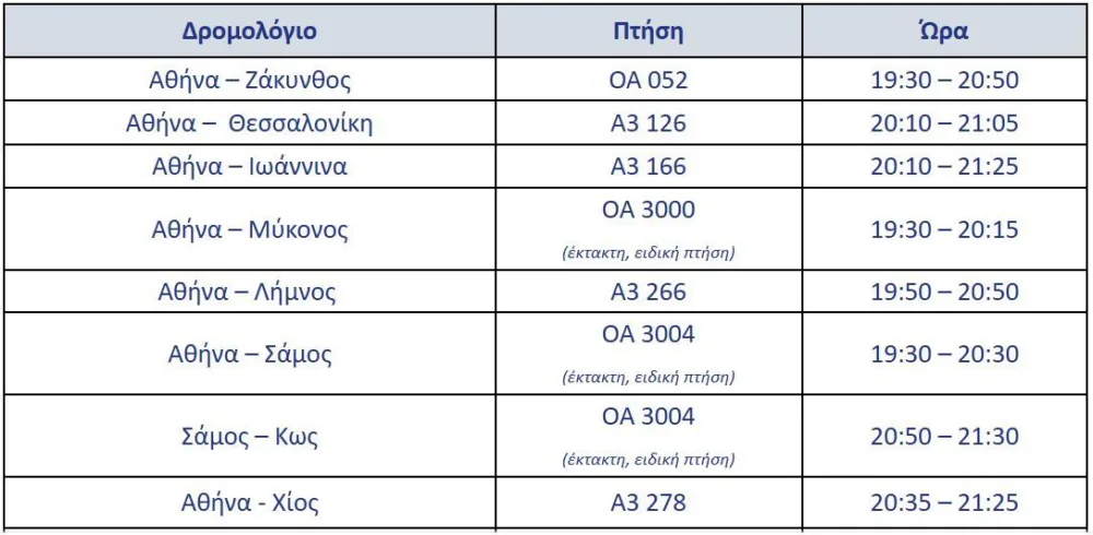 Ειδικότερα, το Μεγάλο Σάββατο το πρόγραμμα των προγραμματισμένων και έκτακτων πτήσεων της AEGEAN και της Olympic Air για τη μεταφορά του Αγίου Φωτός, διαμορφώνεται ως εξής: