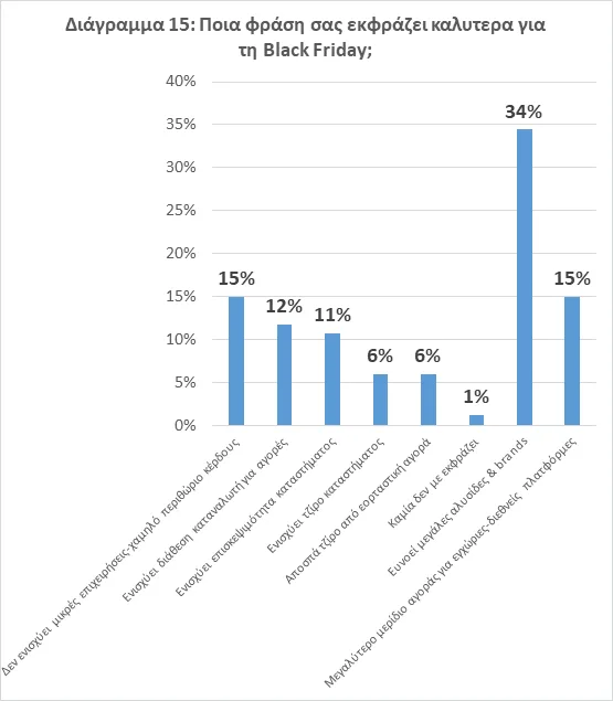 Μόνο 1 στις 5 επιχειρήσεις συμμετείχε στη “Cyber Monday”. - Την αξία της πρακτικής της “Black Friday” αμφισβητεί το 64% των επιχειρήσεων σωρευτικά, θεωρώντας ότι ευνοεί τις μεγάλες αλυσίδες-brands, προσφέρει μεγαλύτερο μερίδιο αγοράς σε εγχώριες και διεθνείς πλατφόρμες, ενώ δεν ευνοεί τις μικρές λόγω χαμηλού περιθωρίου κέρδους.