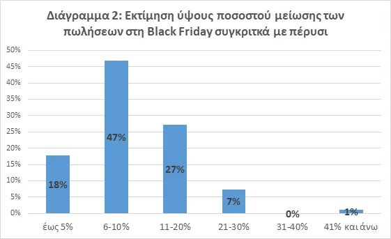 - Επιδείνωση, σε σχέση με την περυσινή “Black Friday”, παρουσίασαν οι πωλήσεις για τις μισές (48%) επιχειρήσεις.