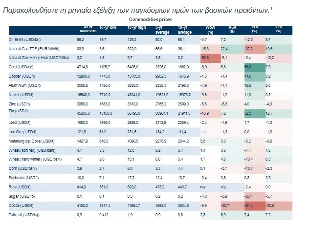 Από τον χαλκό μέχρι το αλουμίνιο και το νικέλιο, τα μη σιδηρούχα μέταλλα έχουν ανακάμψει έντονα τους τελευταίους μήνες, με αξιοσημείωτη επιτάχυνση τον Ιανουάριο. Ο δείκτης LME έχει αυξηθεί κατά 34% σε ετήσια βάση, σε σύγκριση με μόνο 6% το 2025 έναντι του 2024.